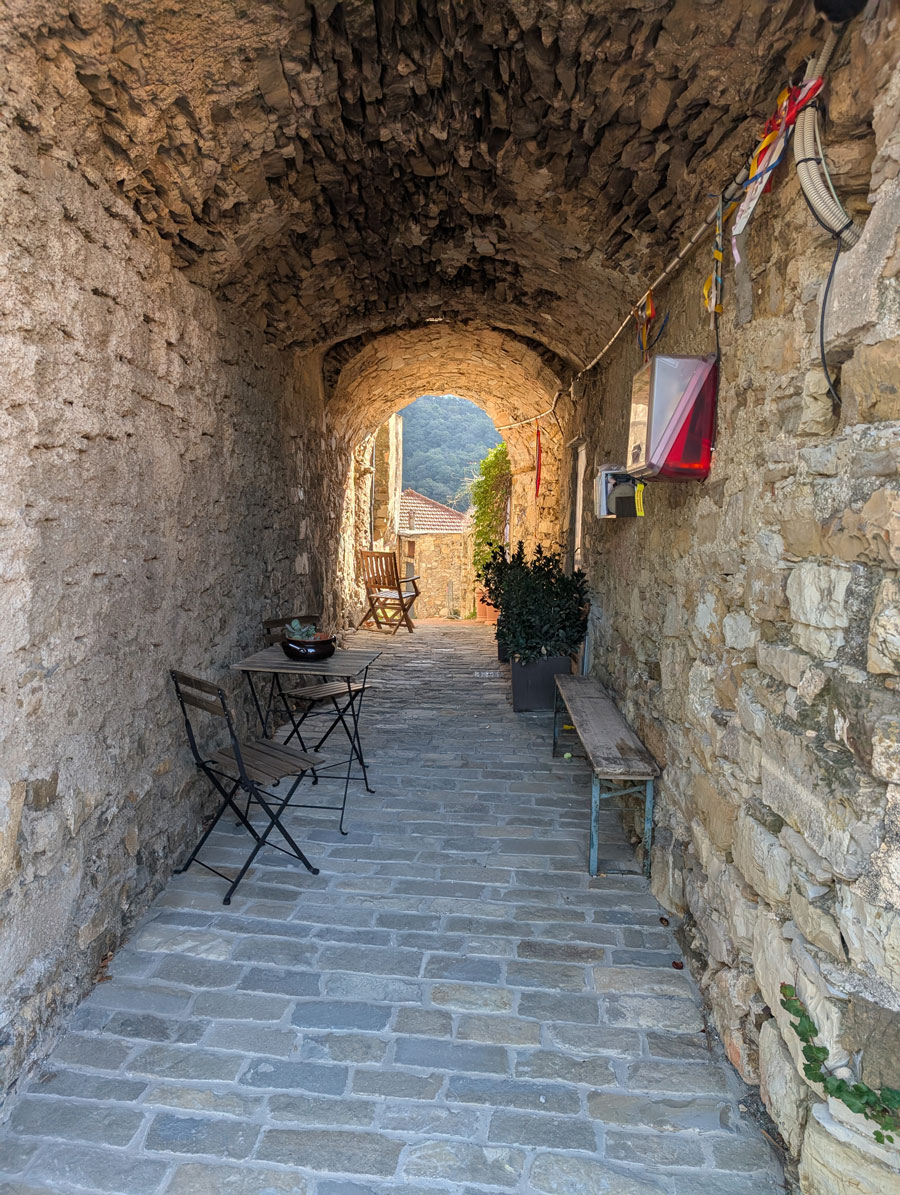 Von Varcavello führt der Weg über Diano Castello, Diano Serreta, Gorleri und Calderina durch Olivenhaine und entlang der Weinberge der bekannten Sorte Vermentino.